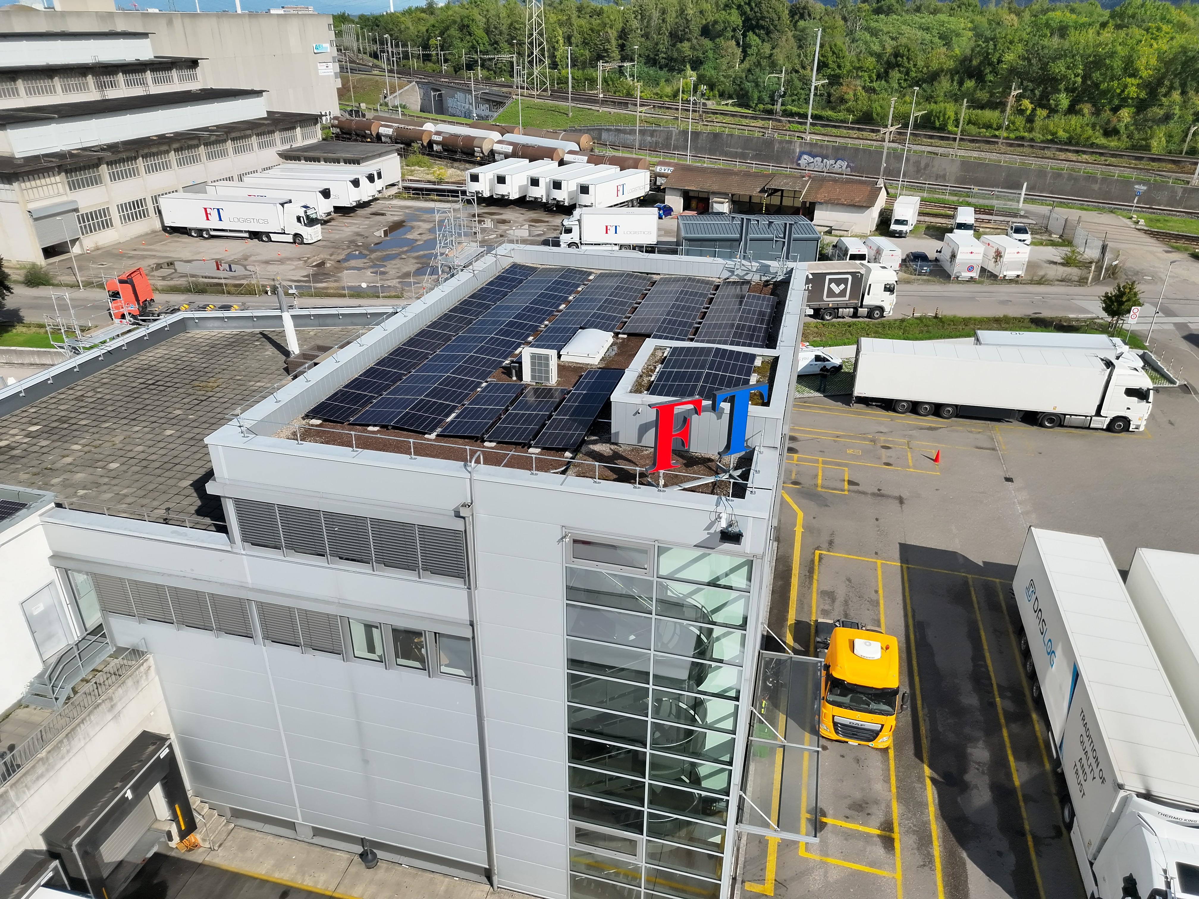 Dies ist die Anlagenerweiterung auf dem Bürogebäude der Firma FT Logistics in Pratteln. Die Photovoltaikanlage wurde auf dem Flachdach installiert und ergänzt die bestehende Anlage mit weiteren 31kWp.