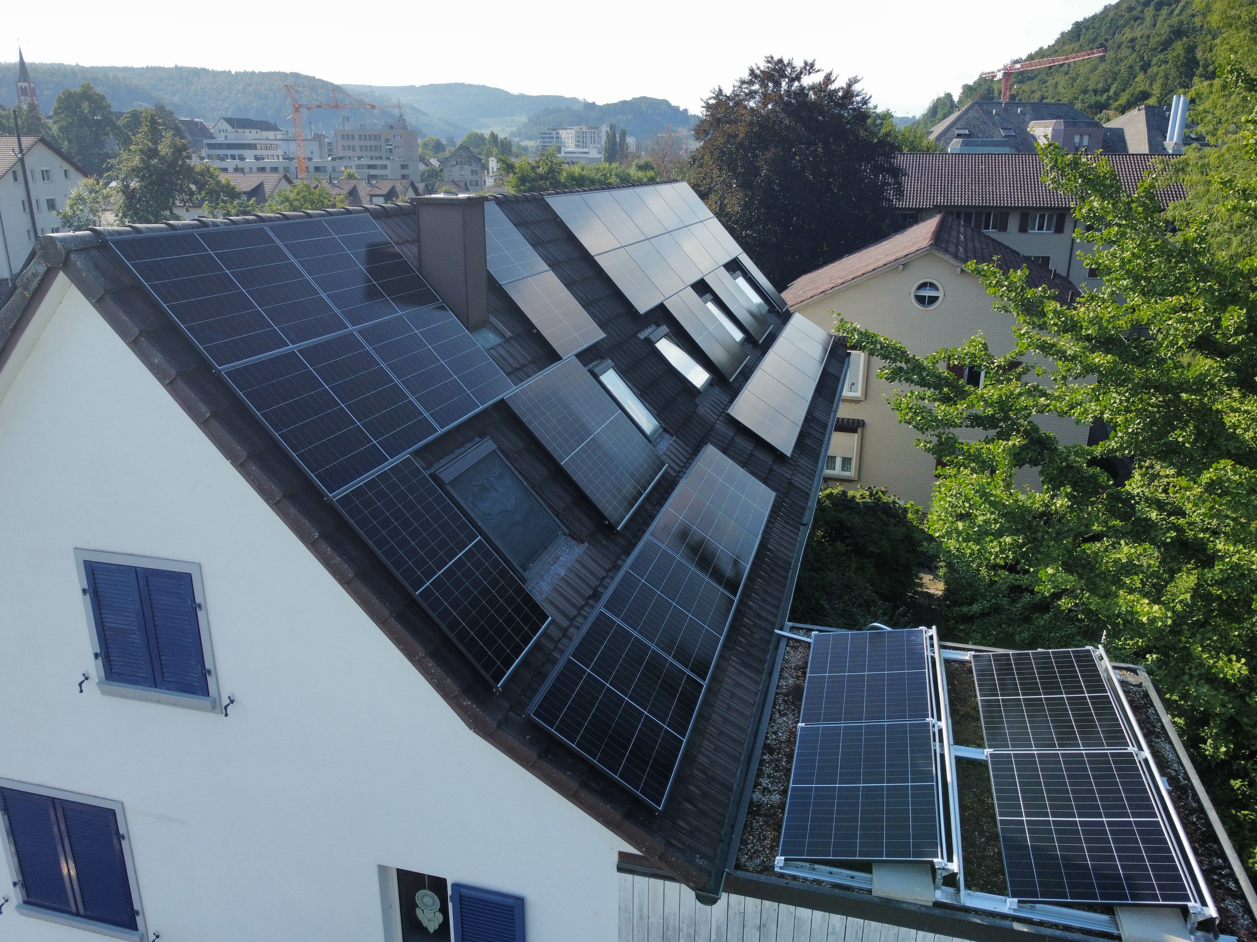 (Anlage Rechts) Diese Anlage wurde auf einem DEFH montiert. Beide Anlagen wurden durch Solar4you geplant und realisiert. Zudem wurde bei diesem Objekt die Elektroverteilung erneuert und die Elektroinstallation auf den neusten Stand gebracht.